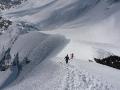 | Là c'est une longue étape, et qui nécessite du beau temps: on part comme pour une descente sur Nessental mais on remonte le Zwischen Tierbergen. Pas loin de 1900 m D+ cumulé. Superbe ambiance et ski grandiose, en descente comme en montée. |