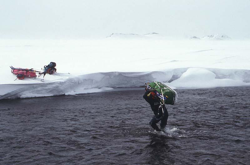 | Portage de pulka dans l'eau glacée: nous utilisons des chaussons de planche à voile avec un paire de chaussettes de rechange. | 23/04/01 22:50 |