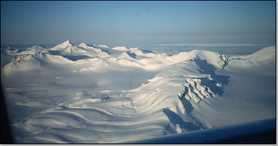 La nuit fut courte : lever à 2h45 pour préparer les bagages (et il y en a pas mal !), ce n'est pas un problème puisqu'il fait jour ! Nous prenons le bus à 3h45 pour l'aéroport, et nous décollons à 5h : la lumière est magnifique. Nous survolons les déserts glacés du Spitzberg : quelle grandeur sauvage !