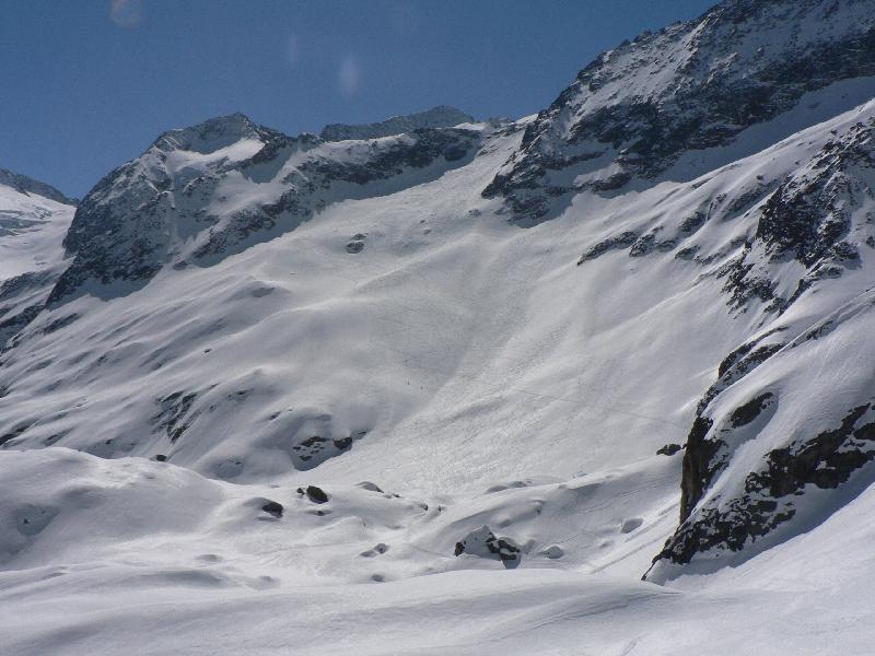 | On arrive en haut de l'arête Windegg et on va faire une traversée descendante pour rejoindre le bas du couloir menant au Pt 2660. On voit des traces de descente: on fera les notres J3 pour rejoindre Z.T. | 10/04/07 12:12 | Commander |