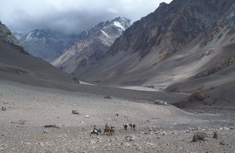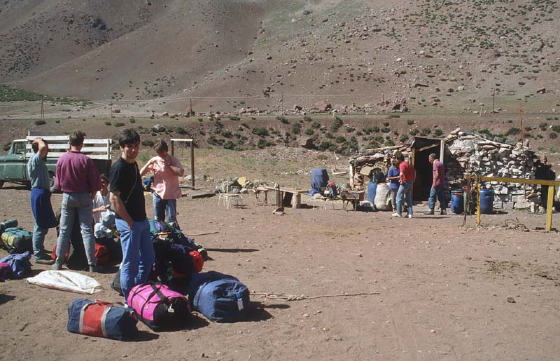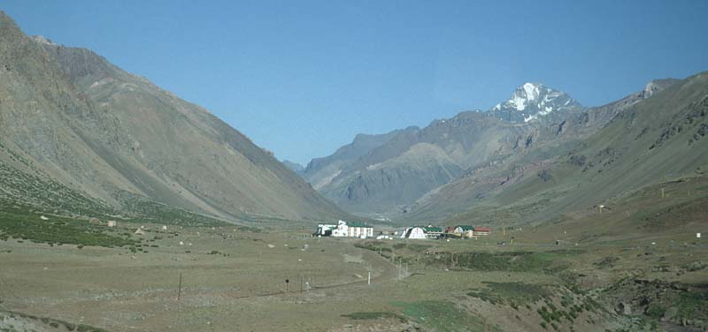 Après 2 jours passés à Medoza à s'occuper des démarches administratives et faire le plein de denrées périssables, nous prenons le bus en direction de la frontière Chillienne. Nous nous arrêtons dans une station de sports d'hiver, tout près de Punte Del Inca (2800m), point de départ pour l'ascension de l'Aconcagua par le chemin classique. Reste alors à choisir notre mule pour acheminer nos deux précieux sacs de matériel jusqu'au camp de base.
