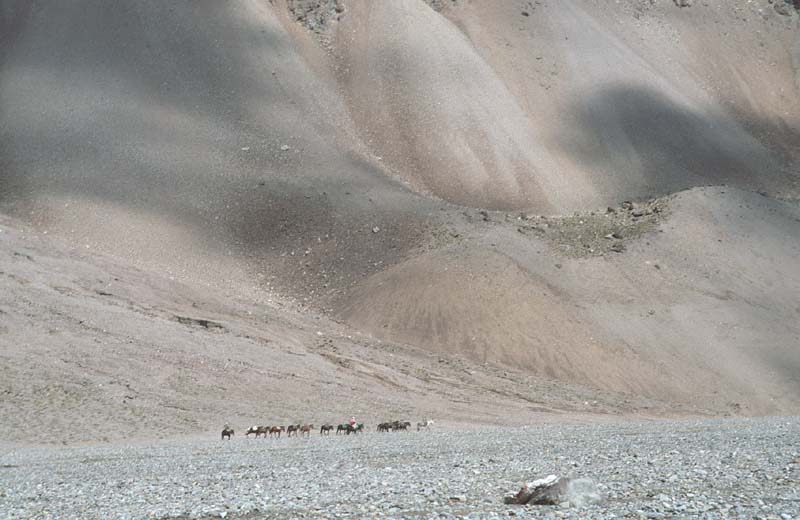 Une longue marche nous attend, la dénivellation n'est pas importante mais la route est longue et monotone. La végétation s'estompe peu à peu pour laisser la place à un univers entièrement minéral.